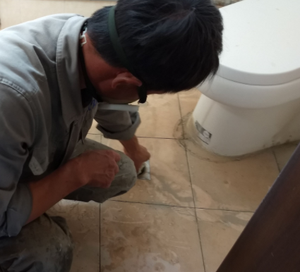 用缓凝水不漏搅拌成粘稠状,迅速将砖缝封堵好,不得遗漏,注:封堵砖缝一定要选择缓凝型堵漏王,且干透之后必须达到足够的硬度和密度,否则无任何防水效果,(快干堵漏王不得使用)。