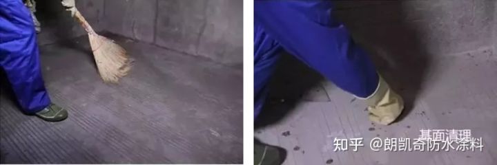 基面清理干净后应洒水湿润,洒水时应适度,确保基面无明水才可以进行下一步施工。