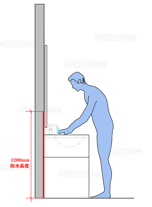 △洗手台预留1200mm的防水高度