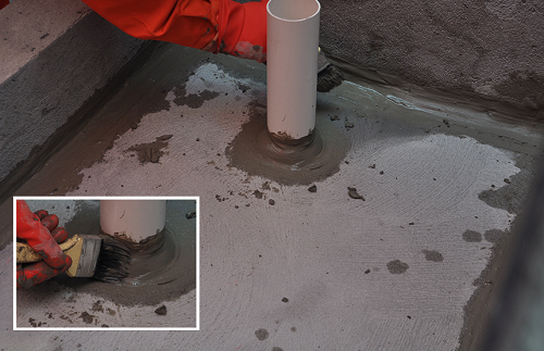 △涂刷防水浆料,待干透后形成一层漆膜,起防水作用