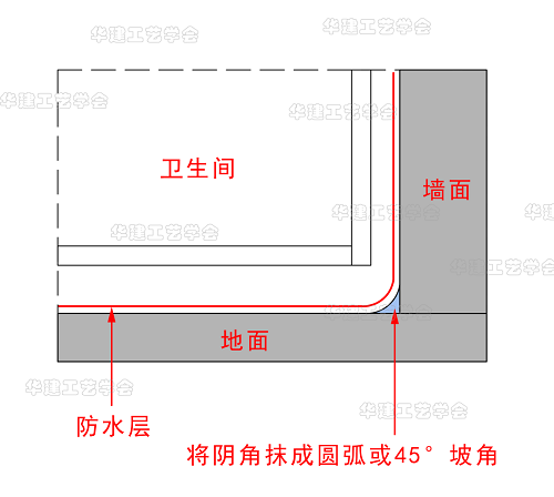 1、墙面防水为300mm防水高度,主要考虑到清洁卫生时会使用水进行冲刷墙角底部位置,而300mm以上高度是不会被冲洗的。