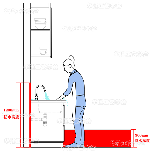 3、洗菜盆区域的防水高度宜为1200mm。