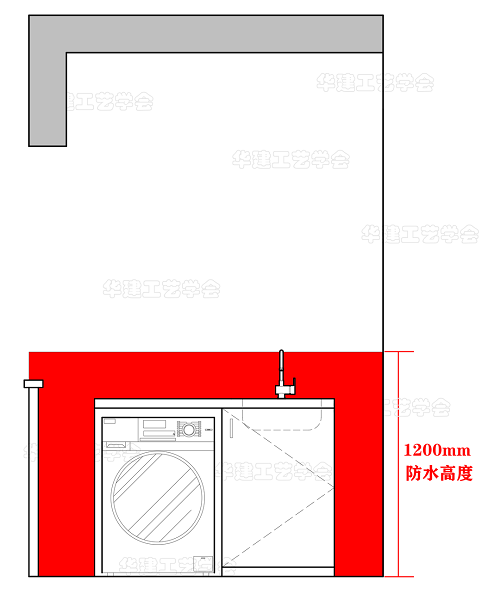 3、洗衣机、洗手盆的防水高度宜为1200mm。