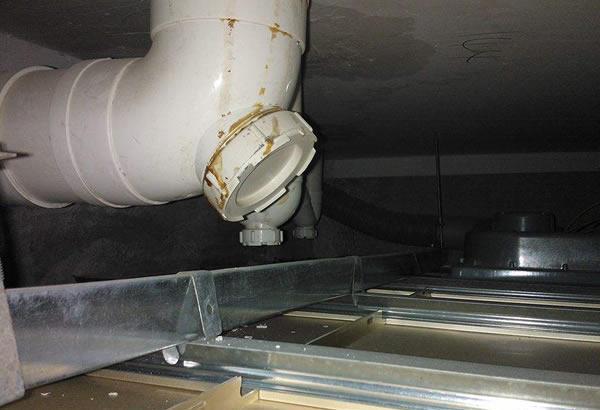后来物业来检查,打开铝扣板吊顶,仔细查看了下,不是顶部渗水,而且顶部没有任何渗水的痕迹,完全可以排除楼上防水出问题的可能性,后来让楼上放水测试,发现问题了。