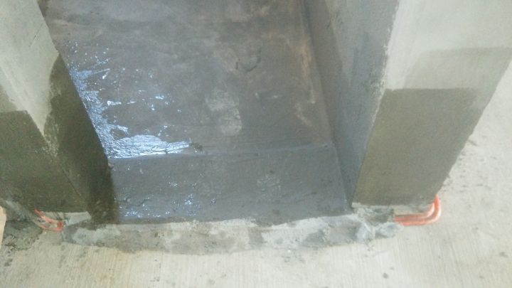 2、墙面第一遍防水涂刷,刷至地面转角处延伸到地面二十公分处,