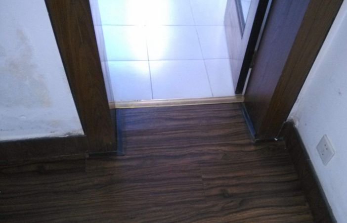 原因2:卫生间门口的防水没处理好或者没做挡水沿,水汽顺着地板空隙到对面墙体上了,导致墙面发霉。