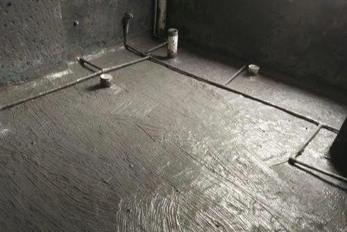 在施工前一定要保证基层的干净,没有灰尘,避免防水出现不粘连的现象。然后把管道周围坑洼不平的地方用沙子水泥找平保证涂刷。在这一步一定要注意地面的坡度尽量要往地漏周边和下水位置走,避免将来防水层处存水导致卫生间或厨房等空间内返潮,而且尽量要把水管放置在防水层上方,即使水管泄漏也不会漏到楼下。