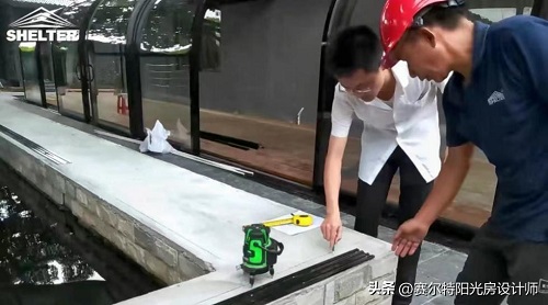 1、如果是靠墙而搭建的阳光房,安装之前一定要测量水平,把凹凸不平的墙面涂料铲除,尽量保持水平的位置上搭建阳光房,必须贴近墙体,这样胶与墙体才能牢固的结合,减少阳光房漏水的风险。