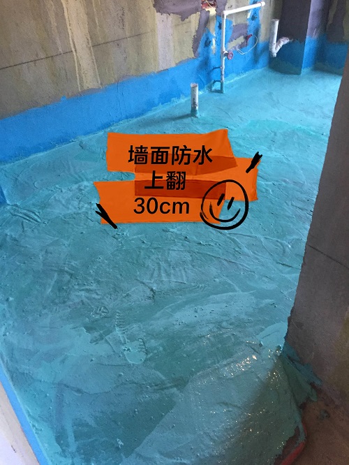 距离地面30cm:一般位置,比如马桶周围,墙面防水做到上翻30cm即可。