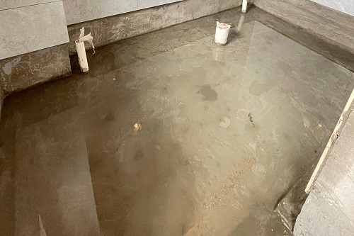 在防水层施工完成后,需要进行第一次闭水试验——把地漏、排水管都堵住,在地面上注入2cm以上深度的水。等待24小时,去楼下观察是否漏水。