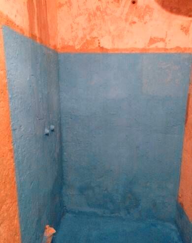 首先涂刷排水管管道口、地漏、阴阳角等薄弱部位。然后再开始整体涂刷防水,先墙面,后地面,从内向外退着操作。