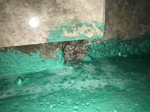即使这些角落里看不出防水层有破损,也要再刷一遍。防水剂在这些角落处的附着力比较低,如果只刷两遍,即使当时没事,用上几年以后也会容易在这些位置产生破口。
