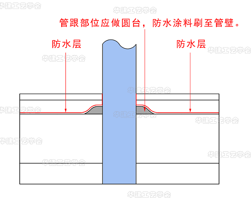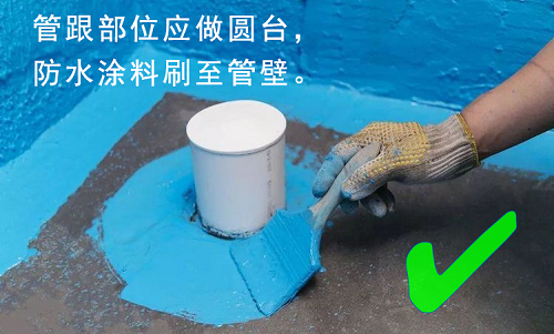 △管跟部位应做圆台,防水涂料刷至管壁