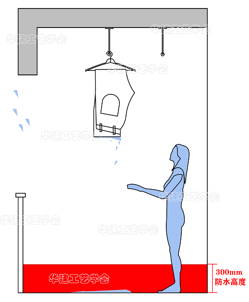 2、淋浴区防水高度为1800mm,主要考虑人员洗澡过程中水滴会溅到相应的高度。