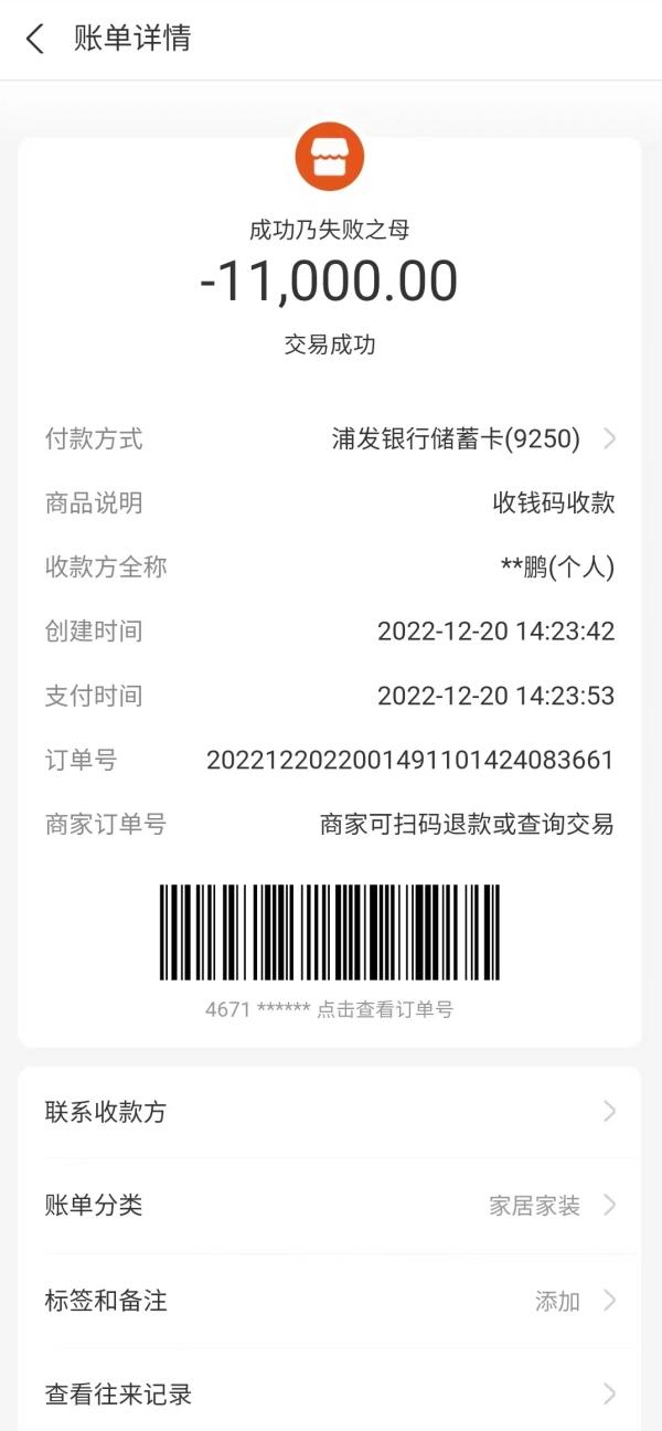 这下让欧伯伯傻了眼,没想到补个漏要花这么多钱,对方又拍着胸脯表示“五年保修”,有问题可以找他们。最后去掉零头,欧老伯付了对方11000元,使用的是手机银行转账,收款方是个人。欧老伯担心不保险,要对方开具发票,并写上“5年保修”的承诺。对方说没问题,根据欧伯伯的需求,开具了一张“电子发票”,开票公司为“上海建企装饰工程有限公司”。