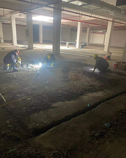 第二步是钻孔。用小型钻孔机在漏点周围钻几个孔,孔的直径大概 10 毫米,深度要钻到筏板的缝隙里,一般钻 15 到 20 厘米深就行,别钻太深把筏板钻透了。孔的位置要离漏点 5 到 10 厘米,每个漏点周围钻 3 到 4 个孔,形成一个包围圈。